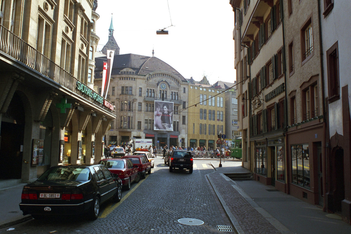 Heuwaage Steinen Vorstadt Barfüsserplatz Bankverein Münsterplatz Wettsteinbrücke Pfalz Freie Strasse Marktplatz Fischmarkt Peterskirche Spalentor Klingental Johanniterbrücke Claramatte Claraplatz Wettsteinplatz Messeplatz Mittlere Brücke ×